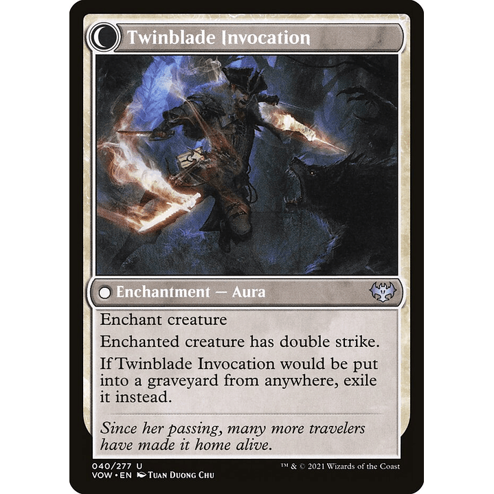 If Twinblade Invocation would be put into a graveyard from anywhere, exile it instead.